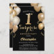 Invitation Surprise 1er anniversaire Ballons noir et or