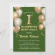 Surprise 1er anniversaire Ballons de Parties scintillant verte et or Invitation d'anniversaire. Pour plus de personnalisation, cliquez sur le bouton "Customiser" et utilisez notre outil de conception pour modifier ce modèle.