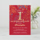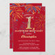 Surprise 1er anniversaire Red and Gold Rainbow Fireworks Invitation. Pour plus de personnalisation, cliquez sur le bouton "Customiser" et utilisez notre outil de conception pour modifier ce modèle.