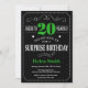 Invitation Surprise 20e anniversaire noir et vert Chalkboard