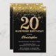 Surprise 20e anniversaire Parties scintillant Noir et Or Confetti Invitation Anniversaire. Pour plus de personnalisation, cliquez sur le bouton "Customiser" et utilisez notre outil de conception pour modifier ce modèle.