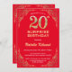 Surprise 20e anniversaire Parties scintillant rouge et or cadre Anniversaire Invitation. Pour plus de personnalisation, cliquez sur le bouton "Customiser" et utilisez notre outil de conception pour modifier ce modèle.
