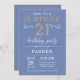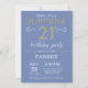Invitation surprise 21e anniversaire avec Arrière - plan de Parties scintillant Bleu et Or. Anniversaire adulte. Hommes ou femmes Anniversaire Invitation. Quel que soit l'âge.