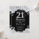 Invitation surprise 21e anniversaire. Arrière - plan en damier en pierre d'argent. Élégant invitation du Bassin d'Anniversaire. Noir et Blanc. Anniversaire adulte. Les femmes, anniversaire. Hommes Anniversaire.