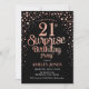 Invitation à la fête du 21e anniversaire Surprise. Design élégant en or rose noir et faux parties scintillant. Comprend des polices de caractères et des confettis stylisés. Message-moi si vous avez besoin d'âge personnalisé.