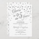 Design élégant en blanc et argent faux scintillant avec confettis et police de caractères script. À 25 ans de mariage ! Parfait pour une fête élégante. Envoyez-moi un message si vous avez besoin d'une année personnalisée.