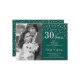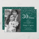 Invitation surprise pour les 30 ans de mariage avec photo. Design élégant en vert émeraude et argent avec police de caractères script et confettis. Peut être personnalisé pour afficher n'importe quelle année de mariage. À 30 ans de mariage !