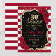 Invitation surprise 30e anniversaire. Dessin féminin noir, blanc, rouge avec fausse parties scintillant or. Caractéristiques rouge foncé et blanc rayures, rose, police de script et confetti. Parfait pour une soirée d'anniversaire élégante. Peut être personnalisé pour montrer n'importe quel âge. Message-moi si vous avez besoin d'une personnalisation plus poussée.