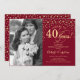 Invitation surprise pour les 40 ans de mariage avec photo. Design élégant en rouge rubis et or avec police de caractères script et confettis. Peut être personnalisé pour afficher n'importe quelle année de mariage. À 40 ans de mariage !