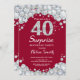 Invitation surprise 40e anniversaire. Arrière - plan rouge de Bourgogne et rouge de strass argenté diamant. Élégant invitation de Bassorh Anniversaire. Anniversaire adulte. Femmes Anniversaire. Hommes Anniversaire. Pour plus de personnalisation, cliquez sur le bouton "Customiser" et utilisez notre outil de conception pour modifier ce modèle.