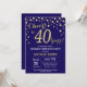 Invitation surprise 40e anniversaire avec Arrière - plan Diamant Parties scintillant bleu et or de la Marine. Gold Confetti. Anniversaire adulte. Hommes ou femmes, anniversaire.