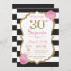 Invitation surprise 30e anniversaire. Noir rose et or. Parties scintillant d'or. Grandes taches noires et blanches. Flore rose. Anniversaire adulte. Fête d'anniversaire des femmes.