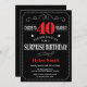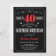 Invitation Surprise 40e anniversaire Typographie rouge et noire. Tableau de bord. Arrière - plan noir et blanc. Anniversaire adulte. Hommes ou femmes, anniversaire. Enfants Garçon ou fille Ado Anniversaire adolescente Invitation . 13e 15e 16e 18e 20e 21e 30e 40e 50e 60e 70e 80e 90e 100e. N'Importe Quel Âge.