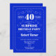 Surprise 40th Birthday Invitation Elégant design royal bleu et blanc rétro. Bravo à 40 ans ! Peut être customisé pour montrer n'importe quel âge.