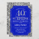 Invitation à la célébration du 40e anniversaire de Surprise. Elégant design classe en bleu royal et faux motif argent parties scintillant. Comprend une police de script élégante. Message-moi si vous avez besoin d'une personnalisation plus poussée.
