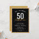Cette élégante surprise 50 & fabuleuse invitation de fête d'anniversaire comprend un design de parties scintillant d'or accentué de texte de script et un arrière - plan noir.