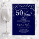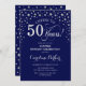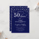 Invitation surprise 50e anniversaire de fête. Design élégant en bleu marine et faux parties scintillant argent. Fonctionne la police de script et les confettis de diamants. Bonjour à 50 ans ! Message-moi si vous avez besoin d'une personnalisation plus poussée.