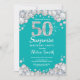 Invitation surprise 50e anniversaire. Turquoise et Silver Rhinestone Diamond Turquoise Turquoise Aqua Arrière - plan. Élégant invitation du Bassin d'Anniversaire. Anniversaire adulte. Les femmes, anniversaire. Hommes Anniversaire.