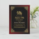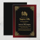 Black surprise 50ème dîner invitation avec un cadre doré orné avec une bordure extérieure à l'ombre rouge pour compléter le design créant une invitation dynamique pour votre occasion spéciale.