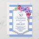 Bleu rayé floral surprise 50e anniversaire dîner invitation à la fête.