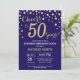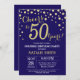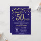 Invitation surprise 50e anniversaire avec l'Arrière - plan Diamond Parties scintillant bleu et or Marine. Confetti d'or. Anniversaire adulte. Hommes ou Femmes Anniversaire. Pour plus de personnalisation, cliquez sur le bouton "Customiser" et utilisez notre outil de conception pour modifier ce modèle.