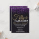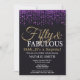 Surprise 50e invitation anniversaire. Cinquante et fabuleux. Parties scintillant violet noir et or. Fête d'anniversaire pour adulte. Pour hommes ou femmes. Pour plus de personnalisation, cliquez sur le bouton "Customiser" et utilisez notre outil de conception pour modifier ce modèle.