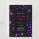 Une invitation à la fête de 50ème anniversaire de surprise noire avec une bordure en faux parties scintillant violet et rose profond constituée de taches et d'étoiles pour un shimmer subtil plutôt qu'un gros étincelle créant un style plus glamour pour l'invitation.