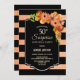 Faux parties scintillant en noir et corail rayé surprise florale 50e anniversaire invitation fête.