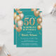 Invitation Surprise 50e anniversaire Turquoises et Ballons d'