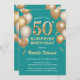 Surprise 50e anniversaire Turquoise et or Parties scintillant Ballons Anniversaire Invitation. Pour plus de personnalisation, cliquez sur le bouton "Customiser" et utilisez notre outil de conception pour modifier ce modèle.