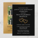 Create an elegant, faux gold and black invitation with this surprise 50th wedding anniversary party invitation template. Add two photos to the back of the invitation for a lovely now and then photo invitation. Easily personalize this stylish black and gold party invitation by adding the couple's names, party date and time, location and other details you choose. All the modern, simple typography is editable. "Surprise 50th Anniversary Celebration" can be customized for any anniversary year. I created the two golden gradient hearts with impressions of buds and leaves for a botanical feel. The unique golden tan gradient hearts are nestled next to each other for a romantic touch. See my golden 50th wedding anniversary collection for matching party table decorations and favors. Create a beautiful memorable party to honor a life long commitment of love.
