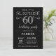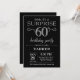 Invitation surprise 60e anniversaire avec Arrière - plan de Parties scintillant noir et argent. Tableau de bord. Anniversaire adulte. Hommes ou femmes Anniversaire Invitation. Quel que soit l'âge.