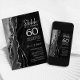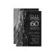 Invitation de célébration du 60e anniversaire en agate noir et argent. Design moderne élégant avec fond de géode de marbre d'agate aquarelle, faux paillettes argent et police de caractères script. Carte d'invitation élégante parfaite pour une fête d'anniversaire de mariage chic. Invitations Zazzle imprimées ou modèle numérique téléchargeable instantanément.