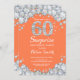 Invitation surprise 60e anniversaire. Corail et Argent Rhinestone Diamond Arrière - plan rouge. Élégant invitation de Bassorh Anniversaire. Anniversaire adulte. Femmes Anniversaire. Hommes Anniversaire. Pour plus de personnalisation, cliquez sur le bouton "Customiser" et utilisez notre outil de conception pour modifier ce modèle.