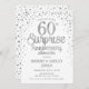 Invitation surprise pour le 60e anniversaire de mariage. Design élégant de carte d'invitation en blanc avec une police de caractères script argentée fausse et confettis. Parfait pour une célébration surprise d'anniversaire de diamant avec style