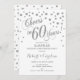 Design élégant en blanc et argent pailleté avec confettis et police de caractères script. À 60 ans de bonheur ! Parfait pour une fête élégante. Envoyez-moi un message si vous avez besoin d'une année personnalisée.