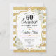 Invitation surprise 60e anniversaire. Design féminin avec parties scintillant d'or faux. Comprend des rayures, des roses blanches, des caractères de script et des confettis. Parfait pour une soirée d'anniversaire élégante. Peut être personnalisé pour montrer n'importe quel âge. Message-moi si vous avez besoin d'une personnalisation plus poussée.