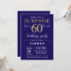 Invitation surprise 60e anniversaire avec Arrière - plan de Parties scintillant bleu et or de la Marine. Tableau de bord. Anniversaire adulte. Hommes ou femmes Anniversaire Invitation.