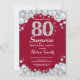 Invitation surprise 80e anniversaire. Arrière - plan Aqua Turquoise Turquoise de Rhinestone rouge et argent de Bourgogne. Élégant invitation du Bassin d'Anniversaire. Anniversaire adulte. Les femmes, anniversaire. Hommes Anniversaire.
