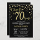 Invitation surprise 70e anniversaire avec Arrière - plan Diamant de Parties scintillant noir et or. Gold Confetti. Anniversaire adulte. Hommes ou femmes, anniversaire.