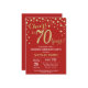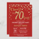 Surprise 70e anniversaire Invitation avec Parties scintillant rouge et or Arrière - plan diamant. Confetti d'or. Anniversaire adulte. Hommes ou Femmes Anniversaire. Pour plus de personnalisation, cliquez sur le bouton "Customiser" et utilisez notre outil de conception pour modifier ce modèle.