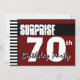 Surprise 70e anniversaire Rouge et Noir V02 Ce design moderne est une façon amusante de faire invitation aux gens à une fête de 75e anniversaire Surprise. Tout le texte est entièrement personnalisable. Vous pouvez expérimenter différents types de papier en cliquant sur l'onglet "Options d'invitation" dans le coin supérieur droit. Je vous recommande le papier métallique dans la glace qui donne à votre invitation d'anniversaire un éclat et un éclat festifs. Trendy !