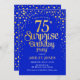 Invitation surprise 75e anniversaire de fête. Design élégant en bleu royal et faux or parties scintillant. Comprend des polices de caractères et des confettis stylisés. Message-moi si vous avez besoin d'âge personnalisé.