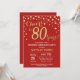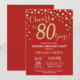 Surprise 80e anniversaire Invitation avec Parties scintillant rouge et or Arrière - plan diamant. Confetti d'or. Anniversaire adulte. Hommes ou Femmes Anniversaire. Pour plus de personnalisation, cliquez sur le bouton "Customiser" et utilisez notre outil de conception pour modifier ce modèle.