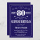 Invitation Surprise 80e Anniversaire Marine Typographie Bleue et Blanche. Arrière - plan bleu de la Marine. Anniversaire adulte. Hommes ou femmes, anniversaire. Enfants Garçon ou fille Ado Anniversaire adolescente Invitation . 13e 15e 16e 18e 20e 21e 30e 40e 50e 60e 70e 80e 90e 100e. N'Importe Quel Âge.