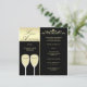 Cette invitation surprise de fête d'anniversaire de mariage comporte deux verres pour un toast pour le couple anniversaire avec des détails dorés élégants faisant une belle invitation surprise de fête d'anniversaire de mariage. Copyright henishouseofpaper