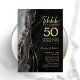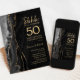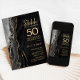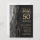 Invitation de célébration surprise des 50 ans de l'agate noire et or. Design moderne élégant avec fond de géode de marbre d'agate aquarelle, or scintillant faux et police de caractères script. Carte d'invitation élégante parfaite pour une fête d'anniversaire de mariage chic. Invitations Zazzle imprimées ou modèle de template numérique téléchargeable instantanément.