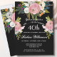 Start this special SURPRISE 40th birthday celebration in a elegant style with this beautifully hand painted invitation with colorful yet gentle flowers -- leading with blush pink and greenery, yet adding interesting other touches of color striking against an all black background.. All of the text can be personalized for your party including the guest of honor's age. If you have any special requests or require design assistance, just send a chat and we'll be delighted to assist. (The floral artwork is from www.createthecut.com)