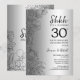 Invitation pour la célébration des 30 ans de mariage Silver Black Botanical Surprise. Design moderne minimaliste avec des accents botaniques et une typographie en police de caractère script. Carte d'invitation florale simple parfaite pour une fête d'anniversaire surprise élégante. Peut être personnalisée pour n'importe quelle année de mariage. Cartes d'invitation Zazzle imprimées ou modèle numérique téléchargeable instantanément.