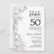 Carte d'invitation de célébration de 50e anniversaire de mariage Surprise Botanique Noir Blanc. Design moderne minimaliste avec accents botaniques et police de caractères script. Carte d'invitation florale simple parfaite pour une fête d'anniversaire surprise élégante. Peut être personnalisé pour n'importe quelle année de mariage. Invitations Zazzle imprimées ou modèle de template numérique téléchargeable instantanément.